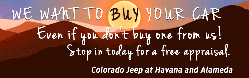 Give us a call at (888) 479-3053 or come visit our dealership at 350 S Havana St to set up a test drive for the Jeep Patriot or the Jeep Renegade. We have a great inventory you can browse and we want to buy your car!