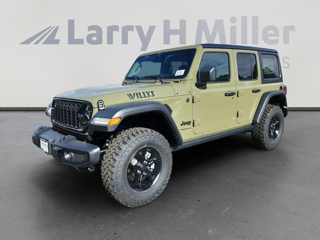 This Jeep Wrangler has a powerful Intercooled Turbo Premium Unleaded I-4 2.0 L/122 engine powering this Automatic transmission. WILLY'S SUSPENSION (STD), QUICK ORDER PACKAGE 22W WILLYS -inc: 2.0L I4 DOHC DI Turbo Engine w/ESS, 8-Speed Automatic 850RE Transmission, 7 & 4 Pin Wiring Harness, Conventional Differential Front Axle, 4-Wheel Drive Swing Gate Decal, Black Grille, Injection Molded Black Rear Bumper, Dana M210 Wide HD Tube Front Axle, Daytime Running Lamps LED Accents, Front LED Fog Lamps, LED Premium Reflector Headlamps, E-Locker Rear Axle, Corning Gorilla Glass, Security Alarm, Class II Receiver Hitch, Mold In Color Bumper w/Gloss Black, Advanced Brake Assist, Automatic Headlamps, Off-Road Plus Mode, Willys Hood Decal, Full Speed Forward Collision Warning Plus, Rock Protection Sill Rails, Power Heated Mirrors, Enhanced Adaptive Cruise Control, Auxiliary Switches, Dana M220 Wide Rear Axle, Molded in Color Rubicon Highline Flare, Premium Wrapped Steering Wheel, Sun Visors w/Illuminated Vanity Mirrors, MYFLEXCARE SERVICE PLAN, LT285/70R17C BSW MUD TERRAIN TIRES (STD), BLACK, CLOTH LOW-BACK BUCKET SEATS.