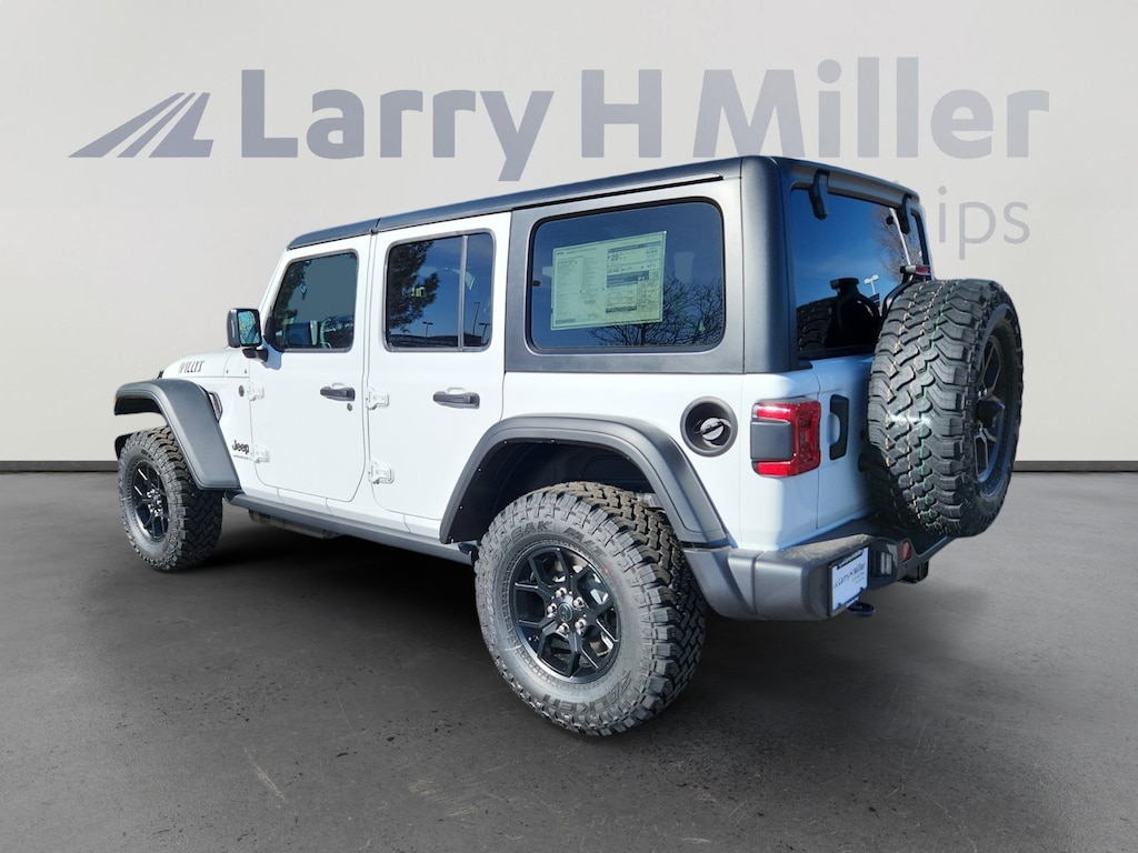 This Jeep Wrangler has a powerful Regular Unleaded V-6 3.6 L/220 engine powering this Automatic transmission. WILLY'S SUSPENSION (STD), SAFETY GROUP -inc: ParkSense Rear Park Assist System, Auto High Beam Headlamp Control, Blind Spot & Cross Path Detection, LED Taillamps, Injection Molded Black Rear Bumper, QUICK ORDER PACKAGE 24W WILLYS -inc: 3.6L V6 24V VVT UPG I Engine w/ESS, 8-Speed Automatic 850RE Transmission, 7 & 4 Pin Wiring Harness, Conventional Differential Front Axle, Power Dome Dual Vented Hood, 4-Wheel Drive Swing Gate Decal, Black Grille w/Gloss Black Rings, Injection Molded Black Rear Bumper, Dana M210 Wide HD Tube Front Axle, Daytime Running Lamps LED Accents, Front LED Fog Lamps, LED Premium Reflector Headlamps, E-Locker Rear Axle, Corning Gorilla Glass, Security Alarm, Class II Receiver Hitch, Mold In Color Bumper w/Gloss Black, Advanced Brake Assist, Automatic Headlamps, Off-Road Plus Mode, Willys Hood Decal, Full Speed Forward Collision Warning Plus, Rock Protection Sill Rails, Power Heated Mirrors, Enhanced Adaptive Cruise Control, Auxiliary Switches, Dana M220 Wide Rear Axle, Molded in Color Rubicon Highline Flare, Premium Wrapped Steering Wheel, Sun Visors w/Illuminated Vanity Mirrors, MYFLEXCARE SERVICE PLAN, LT285/70R17C BSW MUD TERRAIN TIRES (STD).