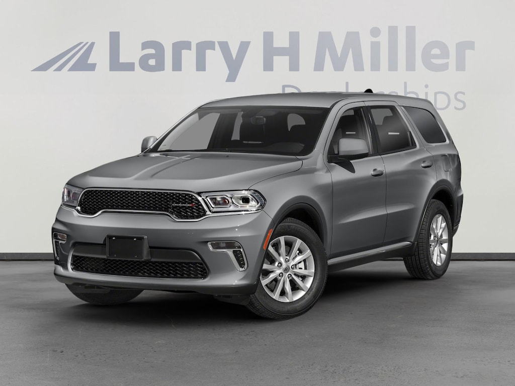Larry H. MIller Chrysler Dodge Ram Fiat offers this 2021 Billet Metallic Clearcoat Dodge Durango SXT RWD. It is well equipped and includes these standard and optional features and benefits: 3rd Row Seating Group (2nd Row 60/40 Fold & Tumble Seat, 3rd Row Remote Headrest Dumping, 3rd Row Seat, and 7-Passenger Seating), Quick Order Package 2BA SXT, 3.27 Rear Axle Ratio, 4-Wheel Disc Brakes, 6 Speakers, ABS brakes, Air Conditioning, Alloy wheels, AM/FM radio: SiriusXM, Anti-whiplash front head restraints, Apple CarPlay, Apple CarPlay/Android Auto, Auto-dimming Rear-View mirror, Auto-leveling suspension, Automatic temperature control, Brake assist, Bumpers: body-color, Cloth Bucket Seats w/Shift Insert, Compass, Delay-off headlights, Driver door bin, Driver vanity mirror, Dual front impact airbags, Dual front side impact airbags, Electronic Stability Control, Four wheel independent suspension, Front anti-roll bar, Front Bucket Seats, Front Center Armrest w/Storage, Front dual zone A/C, Front fog lights, Front reading lights, Fully automatic headlights, Google Android Auto, GPS Antenna Input, Heated door mirrors, Illuminated entry, Integrated Center Stack Radio, Integrated Voice Command w/Bluetooth, Knee airbag, Leather steering wheel, Low tire pressure warning, Occupant sensing airbag, Outside temperature display, Overhead airbag, Overhead console, Panic alarm, ParkView Rear Back-Up Camera, Passenger door bin, Passenger vanity mirror, Power door mirrors, Power steering, Power windows, Radio data system, Radio: Uconnect 4 w/8.4 Display, Rear air conditioning, Rear anti-roll bar, Rear Load Leveling Suspension, Rear reading lights, Rear seat center armrest, Rear window defroster, Rear window wiper, Remote keyless entry, SiriusXM Satellite Radio, Speed control, Speed-sensing steering, Speed-Sensitive Wipers, Split folding rear seat, Spoiler, Steering wheel mounted audio controls, Tachometer, Telescoping steering wheel, Tilt steering wheel, Traction control, Trip computer, Tungsten Interior Accent Stitch, USB Host Flip, Variably intermittent wipers, Voltmeter, and Wheels: 18 x 8.0 Painted Aluminum.
