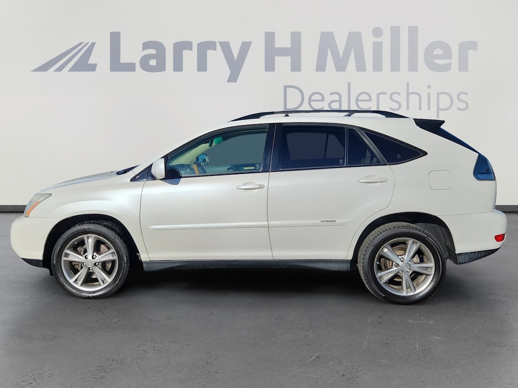 Larry H. MIller Chrysler Dodge Ram Fiat offers this 2007 Gold Lexus RX 400h AWD. It is well equipped and includes these standard and optional features and benefits: 3.3L V6 VVT-i, AWD, Cloth, 17 x 6.5 Aluminum Alloy Wheels, 3.478 Axle Ratio, 4-Wheel Disc Brakes, 8 Speakers, ABS brakes, Air Conditioning, Alloy wheels, AM/FM radio, Auto-dimming door mirrors, Auto-dimming Rear-View mirror, Automatic temperature control, Bodyside moldings, Brake assist, Bumpers: body-color, Cassette, Cassette Player, CD player, Compass, Delay-off headlights, Driver door bin, Driver vanity mirror, Driver's Seat Mounted Armrest, Dual front impact airbags, Dual front side impact airbags, Electronic Stability Control, Fabric Seat Trim, Four wheel independent suspension, Front anti-roll bar, Front Bucket Seats, Front dual zone A/C, Front fog lights, Front reading lights, Fully automatic headlights, Garage door transmitter: HomeLink, Heated door mirrors, Illuminated entry, Illuminated Entry System, Knee airbag, Leather Shift Knob, Leather steering wheel, Lexus Premium Sound System, Low tire pressure warning, Occupant sensing airbag, Outside temperature display, Overhead airbag, Overhead console, Panic alarm, Passenger door bin, Passenger seat mounted armrest, Passenger vanity mirror, Power door mirrors, Power driver seat, Power Liftgate, Power passenger seat, Power steering, Power windows, Radio data system, Rear anti-roll bar, Rear seat center armrest, Rear window defroster, Rear window wiper, Remote keyless entry, Security system, Speed control, Speed-sensing steering, Split folding rear seat, Spoiler, Steering wheel mounted audio controls, Tilt steering wheel, Traction control, Trip computer, and Variably intermittent wipers.