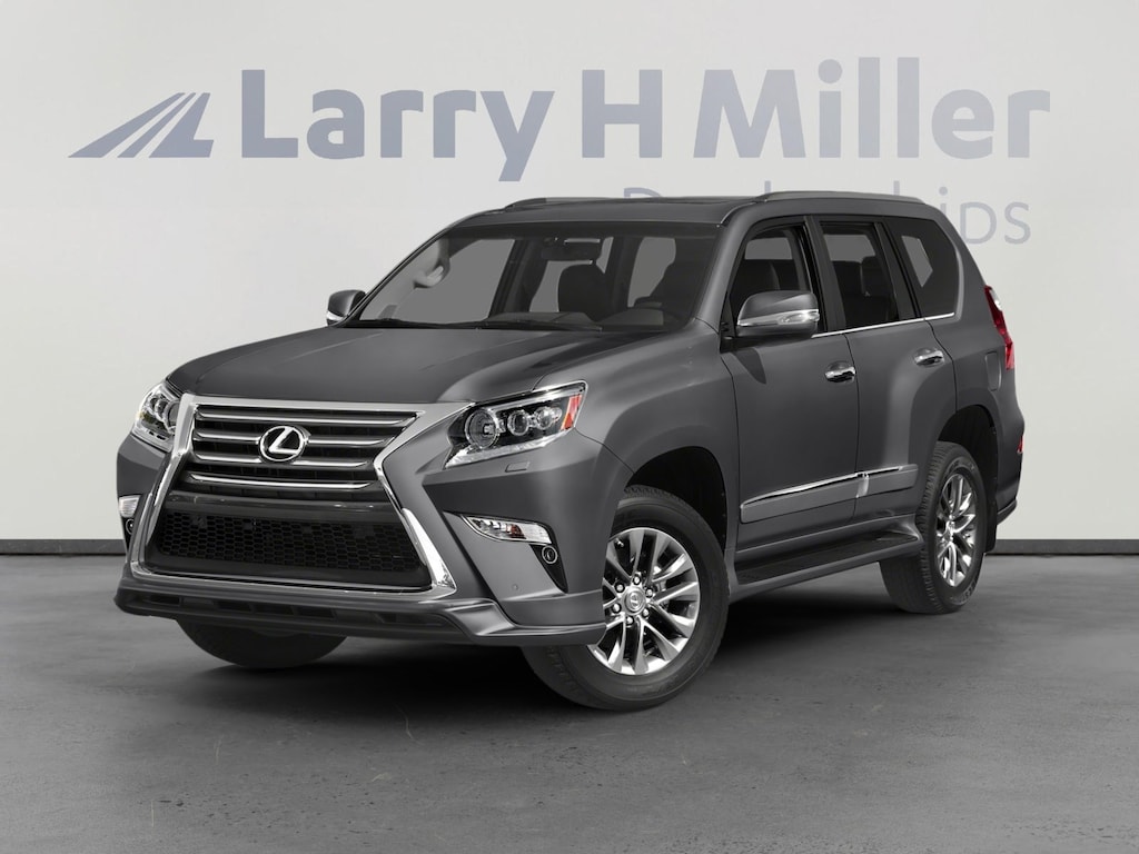 Larry H. MIller Chrysler Dodge Ram Fiat offers this 2017 Gray Lexus GX 460 4WD. It is well equipped and includes these standard and optional features and benefits: 18 x 7.5 6-Spoke Aluminum Alloy Wheels, 3.909 Axle Ratio, 3rd row seats: split-bench, 4-Wheel Disc Brakes, 9 Speakers, ABS brakes, Air Conditioning, Alloy wheels, AM/FM radio: SiriusXM, Anti-whiplash front head restraints, Auto tilt-away steering wheel, Auto-dimming Rear-View mirror, Automatic temperature control, Bodyside moldings, Brake assist, Bumpers: body-color, CD player, Compass, Delay-off headlights, Driver door bin, Driver vanity mirror, Driver's Seat Mounted Armrest, Dual front impact airbags, Dual front side impact airbags, Electronic Stability Control, Emergency communication system: Safety Connect, Exterior Parking Camera Rear, Front anti-roll bar, Front Bucket Seats, Front dual zone A/C, Front reading lights, Front wheel independent suspension, Fully automatic headlights, Garage door transmitter: HomeLink, Heated door mirrors, Illuminated entry, Illuminated running boards, Knee airbag, Leather Shift Knob, Leather steering wheel, Low tire pressure warning, Memory seat, NuLuxe Seat Trim, Occupant sensing airbag, Outside temperature display, Overhead airbag, Overhead console, Panic alarm, Passenger door bin, Passenger seat mounted armrest, Passenger vanity mirror, Power door mirrors, Power driver seat, Power moonroof, Power passenger seat, Power steering, Power windows, Radio data system, Radio: AM/FM Lexus Premium Audio, Rear anti-roll bar, Rear reading lights, Rear seat center armrest, Rear side impact airbag, Rear window defroster, Rear window wiper, Remote keyless entry, Roof rack: rails only, Security system, Speed control, Speed-sensing steering, Split folding rear seat, Spoiler, Steering wheel memory, Steering wheel mounted audio controls, Tachometer, Telescoping steering wheel, Tilt steering wheel, Traction control, Trip computer, Turn signal indicator mirrors, and Variably intermittent wipers.