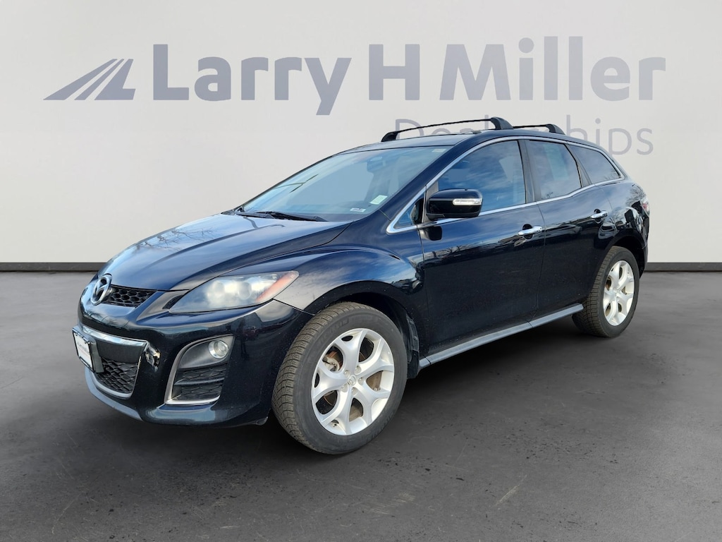 Larry H. MIller Chrysler Dodge Ram Fiat offers this 2010 Brilliant Black Clearcoat Mazda CX-7 s Grand Touring AWD. It is well equipped and includes these standard and optional features and benefits: AWD, 19 x 7.5J Aluminum Alloy Wheels, 3.749 Axle Ratio, 4-Wheel Disc Brakes, 9 Speakers, ABS brakes, Air Conditioning, Alloy wheels, AM/FM In-Dash 6-CD Changer, AM/FM radio: SIRIUS, Anti-whiplash front head restraints, Auto-dimming Rear-View mirror, Automatic temperature control, Brake assist, Bumpers: body-color, CD player, Driver door bin, Driver vanity mirror, Dual front impact airbags, Dual front side impact airbags, Electronic Stability Control, Exterior Parking Camera Rear, Four wheel independent suspension, Front anti-roll bar, Front Bucket Seats, Front Center Armrest, Front fog lights, Front reading lights, Fully automatic headlights, Garage door transmitter: HomeLink, Heated door mirrors, Heated front seats, High-Intensity Discharge Headlights, Illuminated entry, Leather-Trimmed Seat Upholstery, Low tire pressure warning, Memory seat, Navigation System, Occupant sensing airbag, Outside temperature display, Overhead airbag, Panic alarm, Passenger door bin, Passenger vanity mirror, Power door mirrors, Power driver seat, Power moonroof, Power passenger seat, Power steering, Power windows, Rain sensing wipers, Rear anti-roll bar, Rear seat center armrest, Rear window defroster, Rear window wiper, Reclining Front Heated Bucket Seats, Remote keyless entry, Security system, Speed control, Speed-sensing steering, Split folding rear seat, Spoiler, Steering wheel mounted audio controls, Tachometer, Telescoping steering wheel, Tilt steering wheel, Traction control, Trip computer, Turn signal indicator mirrors, and Variably intermittent wipers.