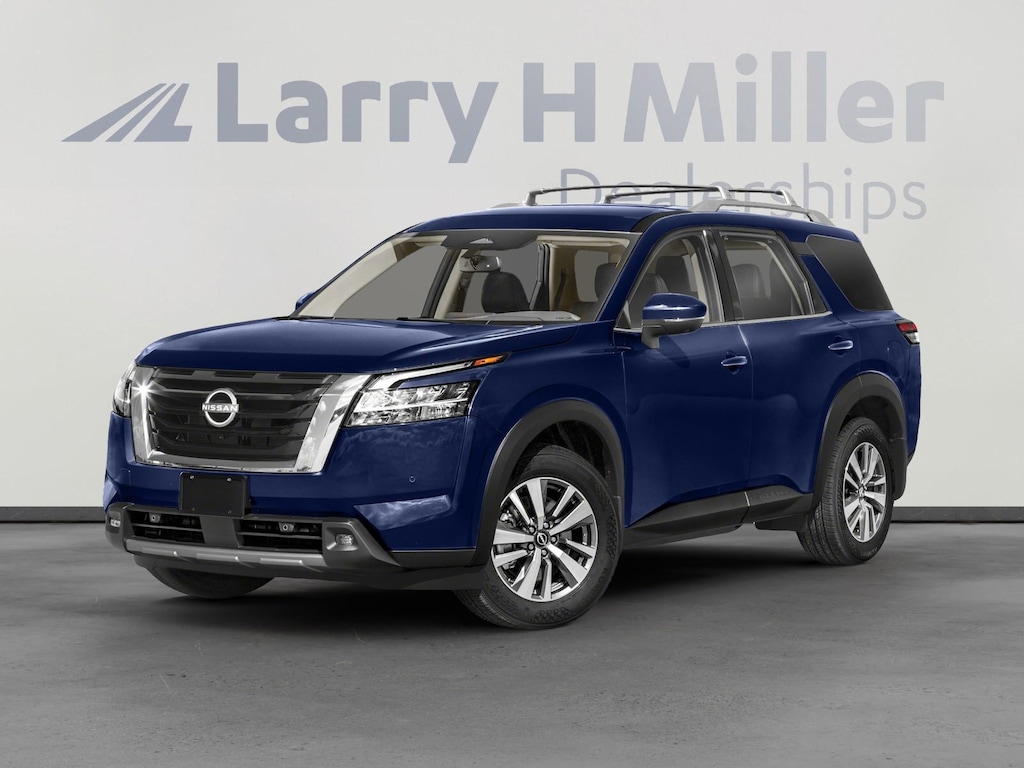 Larry H. MIller Chrysler Dodge Ram Fiat offers this 2022 Deep Ocean Blue Pearl Nissan Pathfinder SL FWD. It is well equipped and includes these standard and optional features and benefits: SL Premium Package (20 Alloy Wheels, 2nd-Row Captain Chairs, 2nd-Row Removable Center Console, Bose Premium Audio System, Heated Rear Seats, Panoramic Moonroof, Tow Hitch Receiver & Harness, and Wireless Charging Pad), Tow Delete Package (Delete Tow Hitch Receiver & Harness), 18 Machined Alloy Wheels, 3rd row seats: bench, 4-Wheel Disc Brakes, 6 Speakers, ABS brakes, Air Conditioning, Alloy wheels, AM/FM radio: SiriusXM, Auto High-beam Headlights, Auto-dimming Rear-View mirror, Automatic temperature control, Axle Ratio: TBD, Black Splash Guards (Set of 4), Brake assist, Bumpers: body-color, Captain's Chairs Carpeted Floor Mats (Set of 4), Delay-off headlights, Driver door bin, Driver vanity mirror, Dual front impact airbags, Dual front side impact airbags, Electronic Stability Control, Emergency communication system: NissanConnect Services, Exterior Parking Camera Rear, Four wheel independent suspension, Front anti-roll bar, Front Bucket Seats, Front Center Armrest, Front dual zone A/C, Front fog lights, Front reading lights, Fully automatic headlights, Garage door transmitter: HomeLink, Heated door mirrors, Heated Front Bucket Seats, Heated front seats, Heated steering wheel, Illuminated entry, Knee airbag, Leather Seating Surfaces, Leather steering wheel, Low tire pressure warning, Navigation system: NissanConnect Navigation, NissanConnect w/Navigation & Services, Occupant sensing airbag, Outside temperature display, Overhead airbag, Overhead console, Panic alarm, Passenger door bin, Passenger vanity mirror, Power door mirrors, Power driver seat, Power Liftgate, Power passenger seat, Power steering, Power windows, Radio data system, Radio: AM/FM Audio System, Rear air conditioning, Rear anti-roll bar, Rear reading lights, Rear seat center armrest, Rear side impact airbag, Rear window defroster, Rear window wiper, Reclining 3rd row seat, Remote keyless entry, Security system, Speed control, Speed-sensing steering, Split folding rear seat, Spoiler, Steering wheel mounted audio controls, Tachometer, Telescoping steering wheel, Tilt steering wheel, Traction control, Trip computer, Turn signal indicator mirrors, and Variably intermittent wipers.