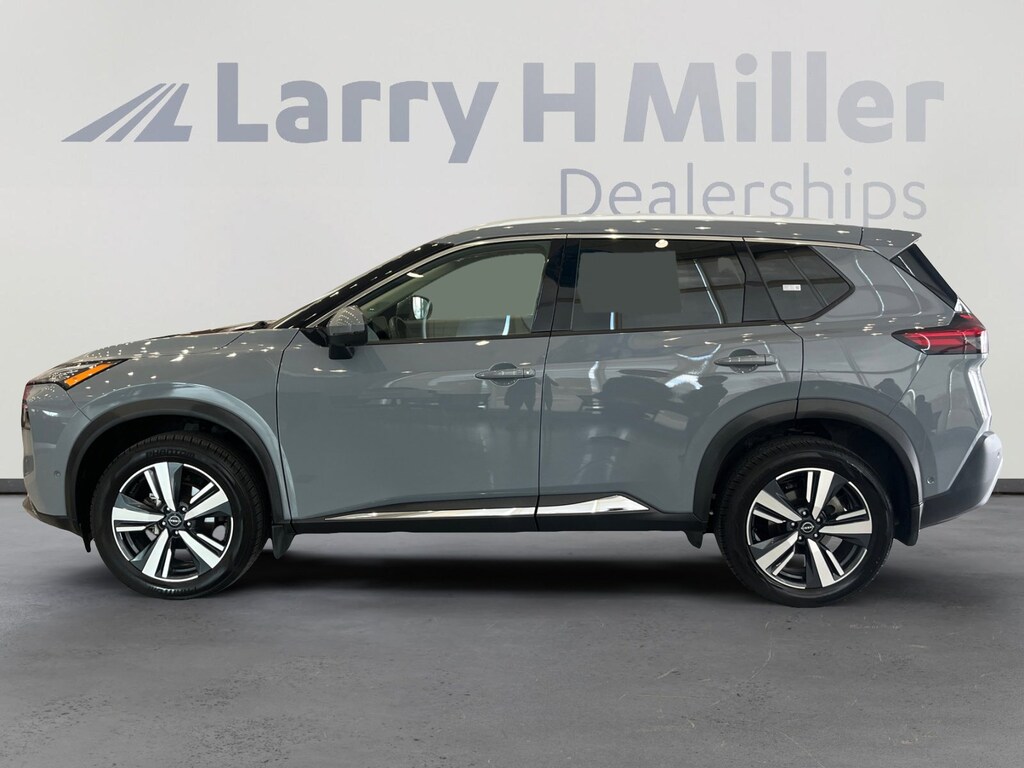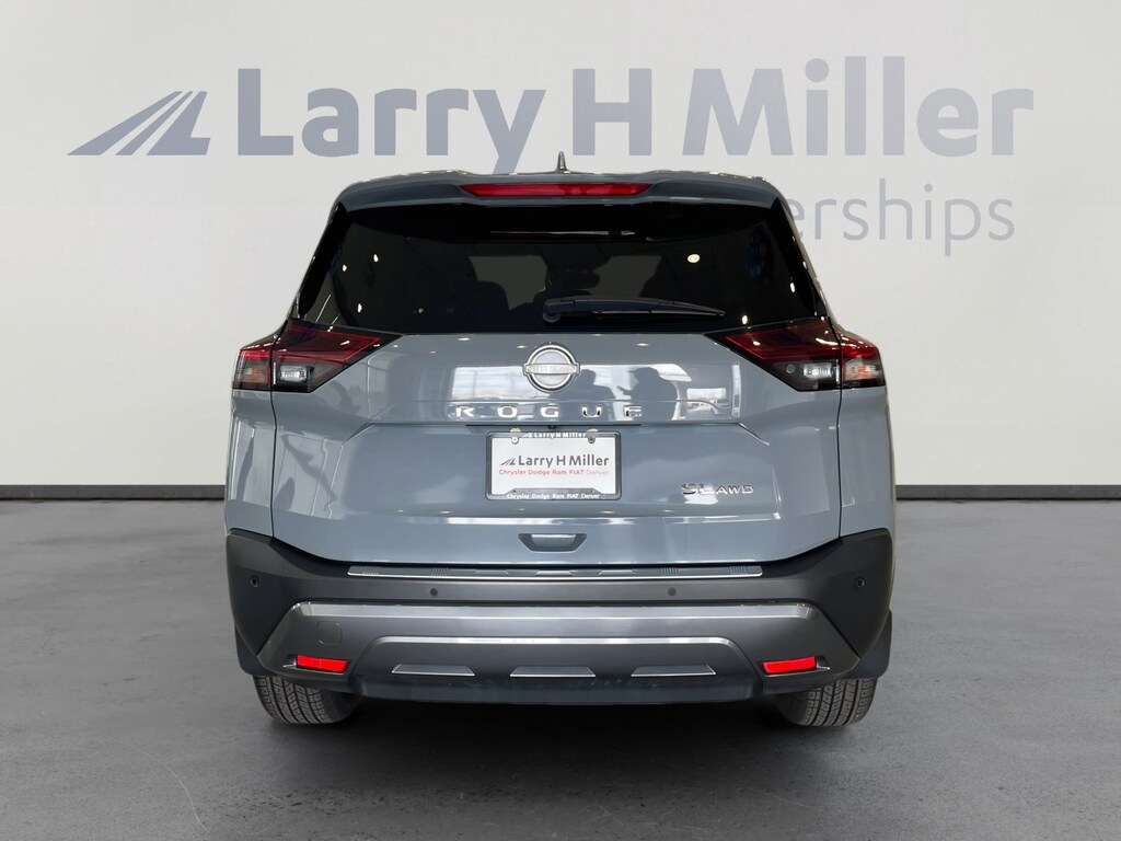 Larry H. MIller Chrysler Dodge Ram Fiat offers this 2023 Boulder Gray Pearl Nissan Rogue SL AWD. It is well equipped and includes these standard and optional features and benefits: SL Premium Package (Bose Premium Audio System, Front, Side & Rear Sonar, Motion Activated Power Liftgate, ProPILOT Assist w/Navi-link, Radio: AM/FM NissanConnect w/Navigation, Rear Door Sunshades, Traffic Sign Recognition, and Tri-Zone HVAC), AWD, 19 Aluminum Alloy Wheels, 4-Wheel Disc Brakes, 6 Speakers, Black Splash Guards (Set of 4), Bumpers: body-color, Emergency communication system: NissanConnect Services, Front Bucket Seats, Front Center Armrest, Panic alarm, Rear anti-roll bar, 5.604 Axle Ratio, ABS brakes, Air Conditioning, Alloy wheels, AM/FM Radio, AM/FM radio: SiriusXM, Auto High-beam Headlights, Auto-dimming Rear-View mirror, Automatic temperature control, Brake assist, Chrome Rear Bumper Protector, Delay-off headlights, Driver door bin, Driver vanity mirror, Dual front impact airbags, Dual front side impact airbags, Electronic Stability Control, Floor Mats w/2-Piece Cargo Area Protector, Four wheel independent suspension, Frameless Rearview Mirror w/Universal Remote, Front anti-roll bar, Front dual zone A/C, Front reading lights, Fully automatic headlights, Heated door mirrors, Heated Front Bucket Seats, Heated front seats, Heated steering wheel, Illuminated entry, Illuminated Kick Plates, Knee airbag, Leather steering wheel, Leather-Appointed Seat Trim, Low tire pressure warning, Memory seat, NissanConnect featuring Apple CarPlay and Android Auto, Occupant sensing airbag, Outside temperature display, Overhead airbag, Overhead console, Passenger door bin, Passenger vanity mirror, Power door mirrors, Power driver seat, Power Liftgate, Power moonroof, Power passenger seat, Power steering, Power windows, Radio data system, Rear Parking Sensors, Rear reading lights, Rear seat center armrest, Rear side impact airbag, Rear window defroster, Rear window wiper, Remote keyless entry, Security system, Speed control, Speed-Sensitive Wipers, Split folding rear seat, Spoiler, Steering wheel mounted audio controls, Tachometer, Telescoping steering wheel, Tilt steering wheel, Traction control, Trip computer, Turn signal indicator mirrors, and Variably intermittent wipers.